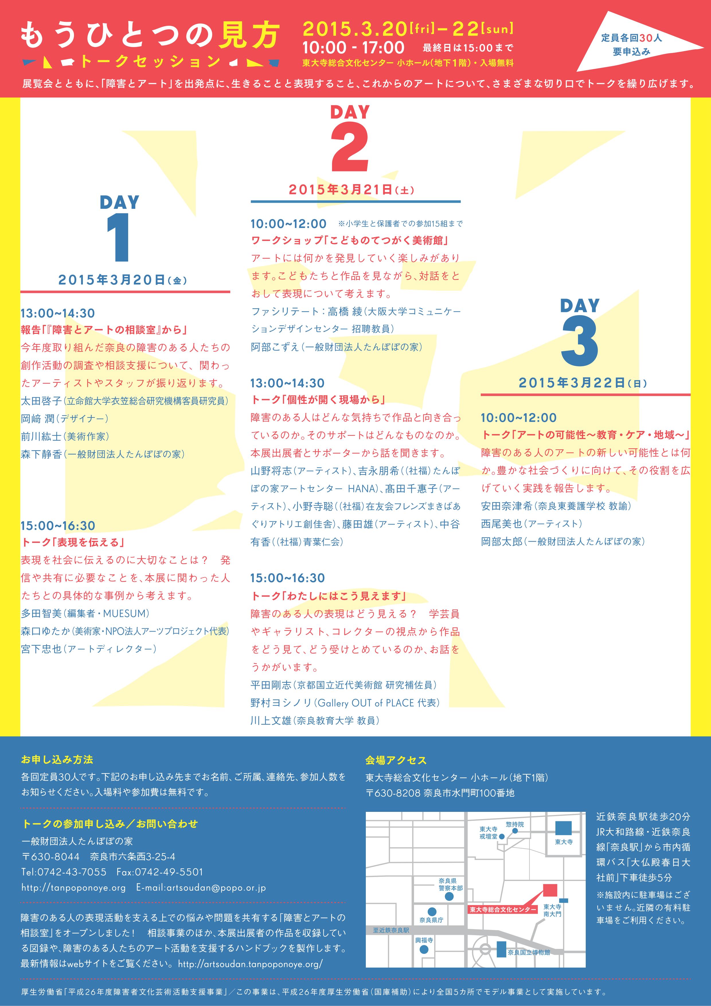 一般財団法人たんぽぽの家 〒630-8044奈良市六条西3-25-4 Tel.0742-43-7055 Fax.0742-49-5501 E-mail:artsoudan@popo.or.jp