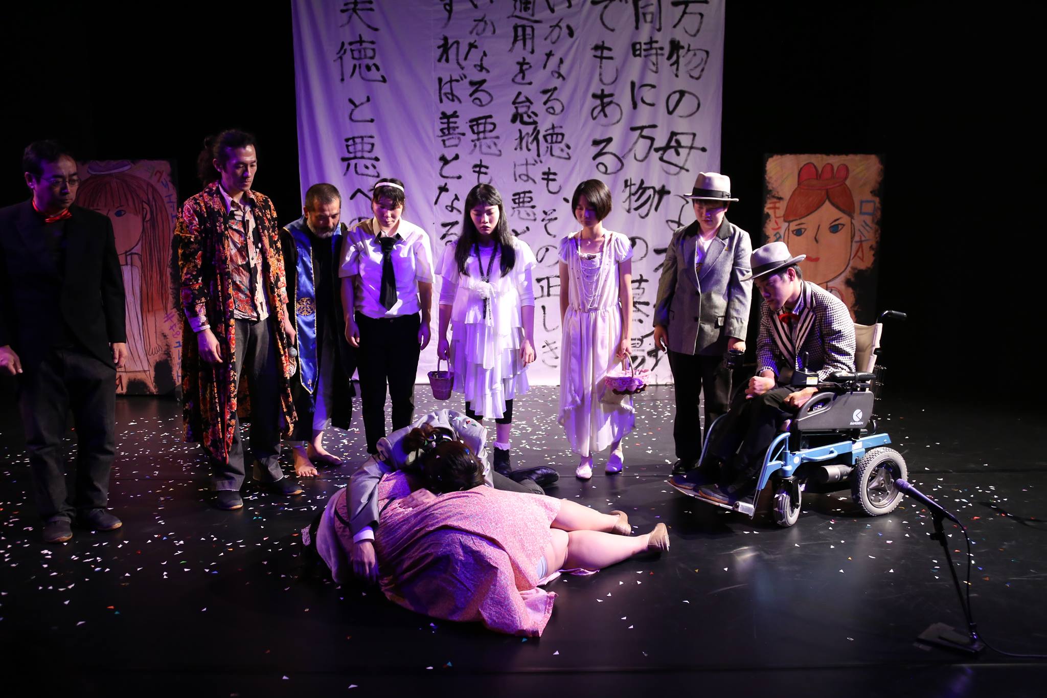 シェイクスピアの「ロミオとジュリエット」を題材に、恋愛とそれをはばむ社会的障壁をテーマとして、物語からイメージを膨らませて生まれたさまざまな場面を組み合わせて創りあげられた作品です。出演者一人一人の体験や想像に基づきながら創られた各場面は、多様性を大事にしながら共に生きるということの意味を、見る人に届けます。障害のある人もない人も、「ロミオとジュリエット」を知っている人も知らない人も、ともに考え楽しんでもらえる作品です。