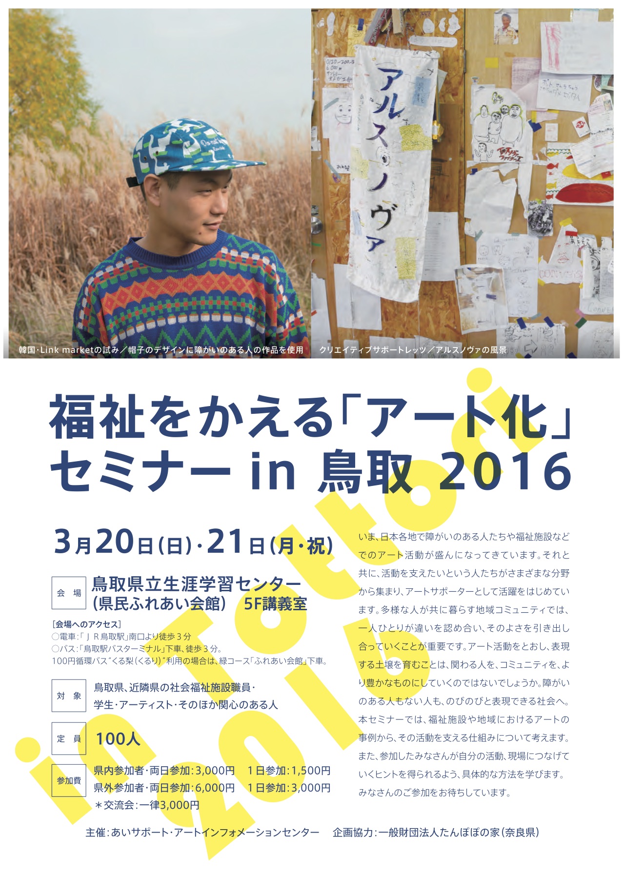 対象/鳥取県、近隣県の社会福祉施設職員・学生・アーティスト・そのほか関心のある人