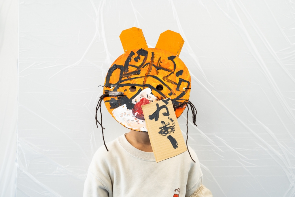また、奈良県みんなでたのしむ大芸術祭フィナーレイベント(みん芸きらめき祭)に合わせて開催した「自分だけのオリジナルのお面をつくろう!」では、ふたたびひまわりの家のみなさんにお越しいただき、たくさんの参加者と一緒にお面づくりを行いました。