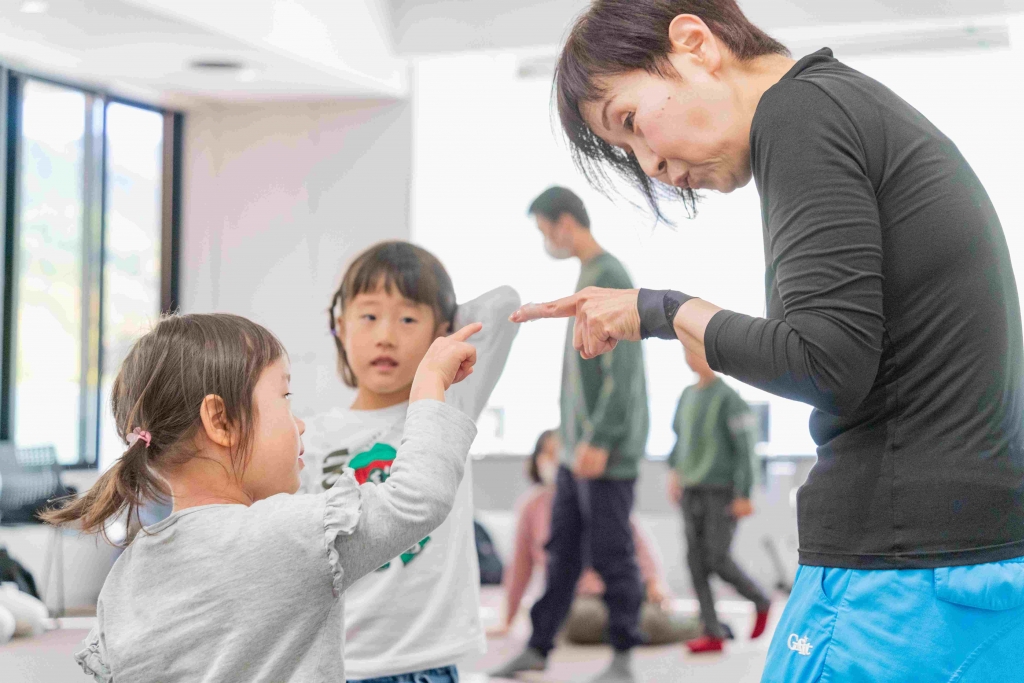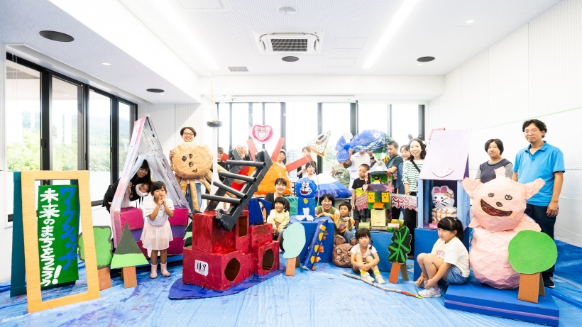 オープンアトリエ部門「段ボールや廃材で未来のまちをつくろう!」では、三宅町の福祉施設ひまわりの家のみなさんを講師に、様々な素材を使って未来の建物や生き物、乗り物を表現。パフォーマンス部門「カラダと仲良し、ダンスで遊ぼう!」では、ダンスカンパニー・セレノグラフィカのお2人と一緒に、参加者たちがオリジナルのダンスパフォーマンス「ビンゴ・ドミンゴ・グーグーグー!」を作りました。